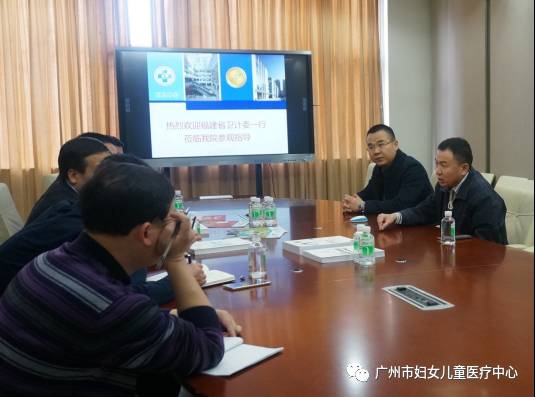 3月14日,为了做好福建省儿童医院的筹建工作,根据国家卫计委医管局的推荐意见,福建省卫生计生委陈厚銮副主任、省妇幼保健院林家禄院长等一行就新院区规划建设、运营管理和专科建设、人才储备等到广州市妇女儿童医疗中心调研考察,市妇儿中心领导夏慧敏、王洪涛、张志尧等接待了来宾。