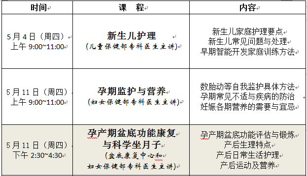 4.孕妇学校课程每月循环,关注微信公众号“广州市妇女儿童医疗中心” 或“广州妇幼保健”可及时了解每月课程安排。