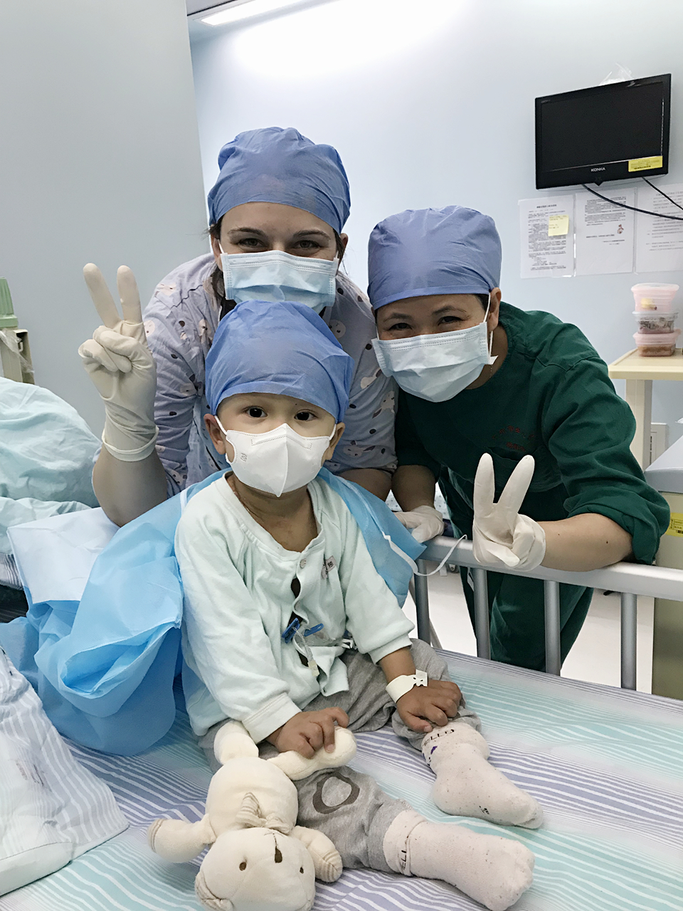 “一带一路”倡议的深入开展,刺激了国际医疗的发展和增长,助推了我院医疗水准与国际水平接轨。但涉外医疗对医护人员也是较大的考验,首先是国际标准质量的高要求,其次是语言沟通的障碍。由于患儿的主要陪护人母亲是波兰人,不懂中文。为了保证整个治疗期间的无障碍沟通,护理团队严阵以待,开展医学英语特训:梳理和制定整个移植过程涉及的常用医学用语和日常对话,每天微信群里发布,大家一起练习。同时,也贴心地为家长制作了英文版的培训课程资料,以及常用护理英语对话提醒卡,制定了语言障碍的应急流程并演练,下载了相关的英语翻译软件等,样样考虑周详,以保证整个治疗阶段的顺畅有效沟通。 得益于前期的充分准备和患儿父亲的大力协助,保障了整个移植过程的有效沟通。