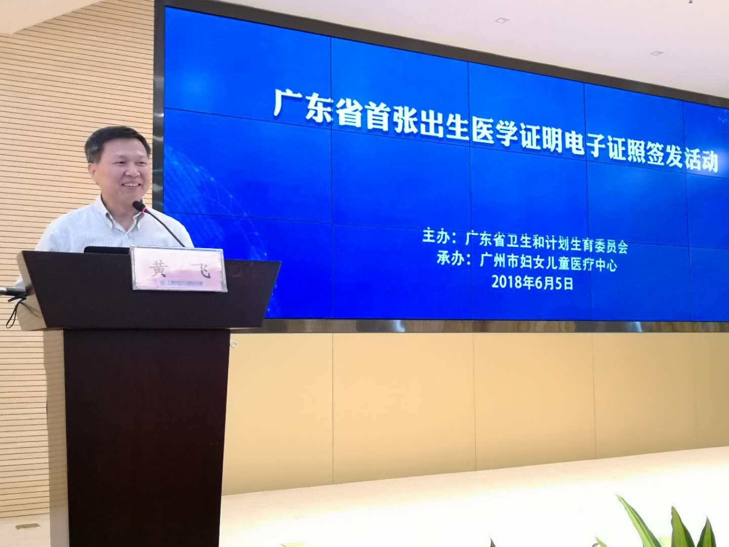 广东省卫生计生委副主任黄飞在活动上表示,全国首张出生医学证明电子证照的签发是广东省推进数字政府改革建设的重大举措,标志着我省互联网+医疗健康建设迈出了新的步伐。