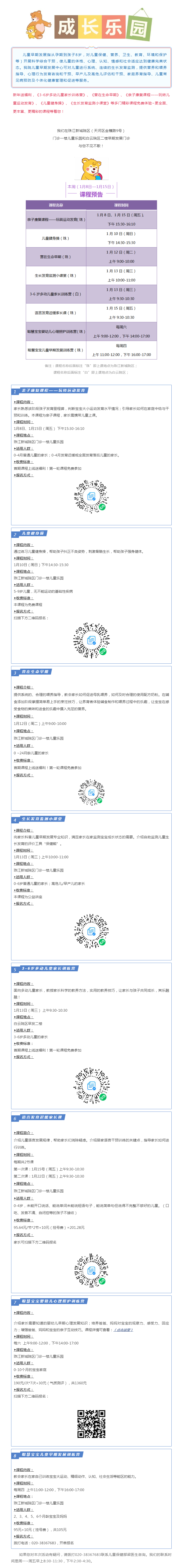 “成长乐园”儿童早期发展系列课程预告:1月8日-15日