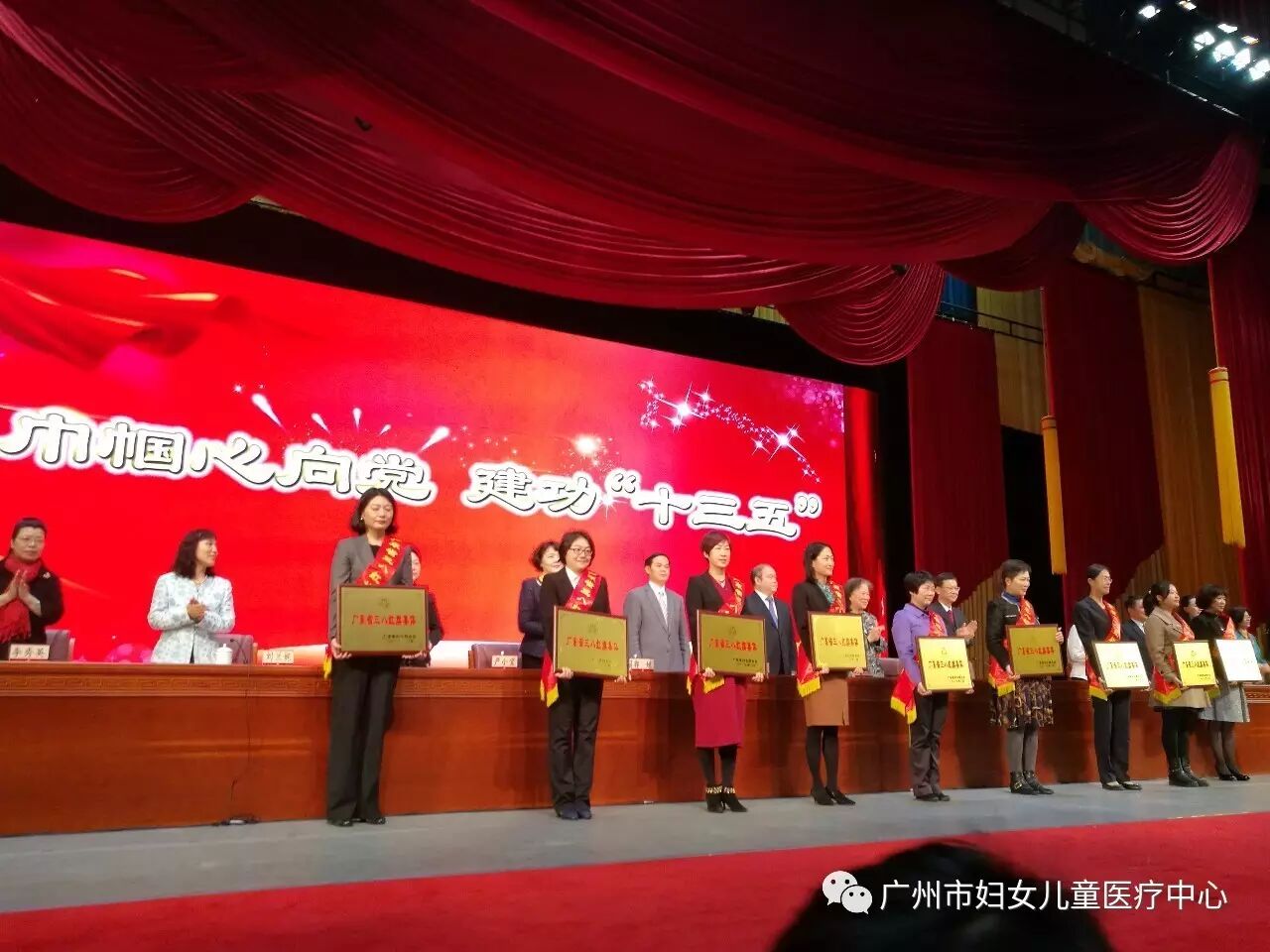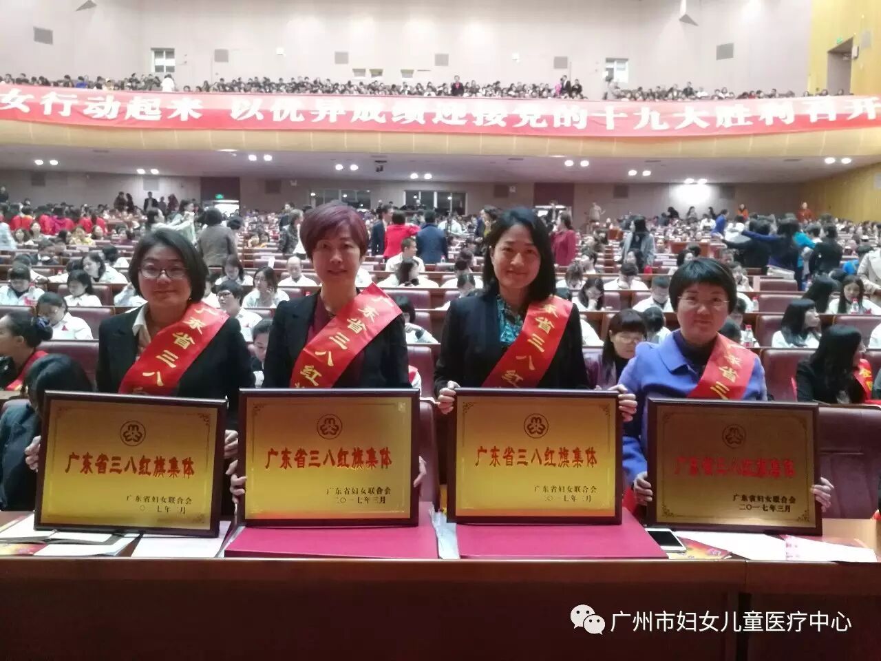今年三八节期间,广东省妇女联合会评选出一批在深化改革开放、树立和落实科学发展、促进社会和谐中作出重大贡献的先进集体和个人,共评出广东省“三八”红旗手100名,广东省“三八”红旗集体30个单位,广东省“巾帼文明岗”426个单位。广州市妇儿中心工会女职工委员会在本次评选活动中被授予广东省“三八”红旗集体光荣称号。3月6日,广东各界妇女纪念“三八”国际劳动妇女节大会在广州珠岛宾馆珠岛会堂召开。对获奖单位进行表彰,省委常委、组织部长邹铭出席会议并讲话,省各界妇女代表1500人参加大会。市妇儿中心工会女职委派出代表参加了庆祝表彰大会,并上台领奖。